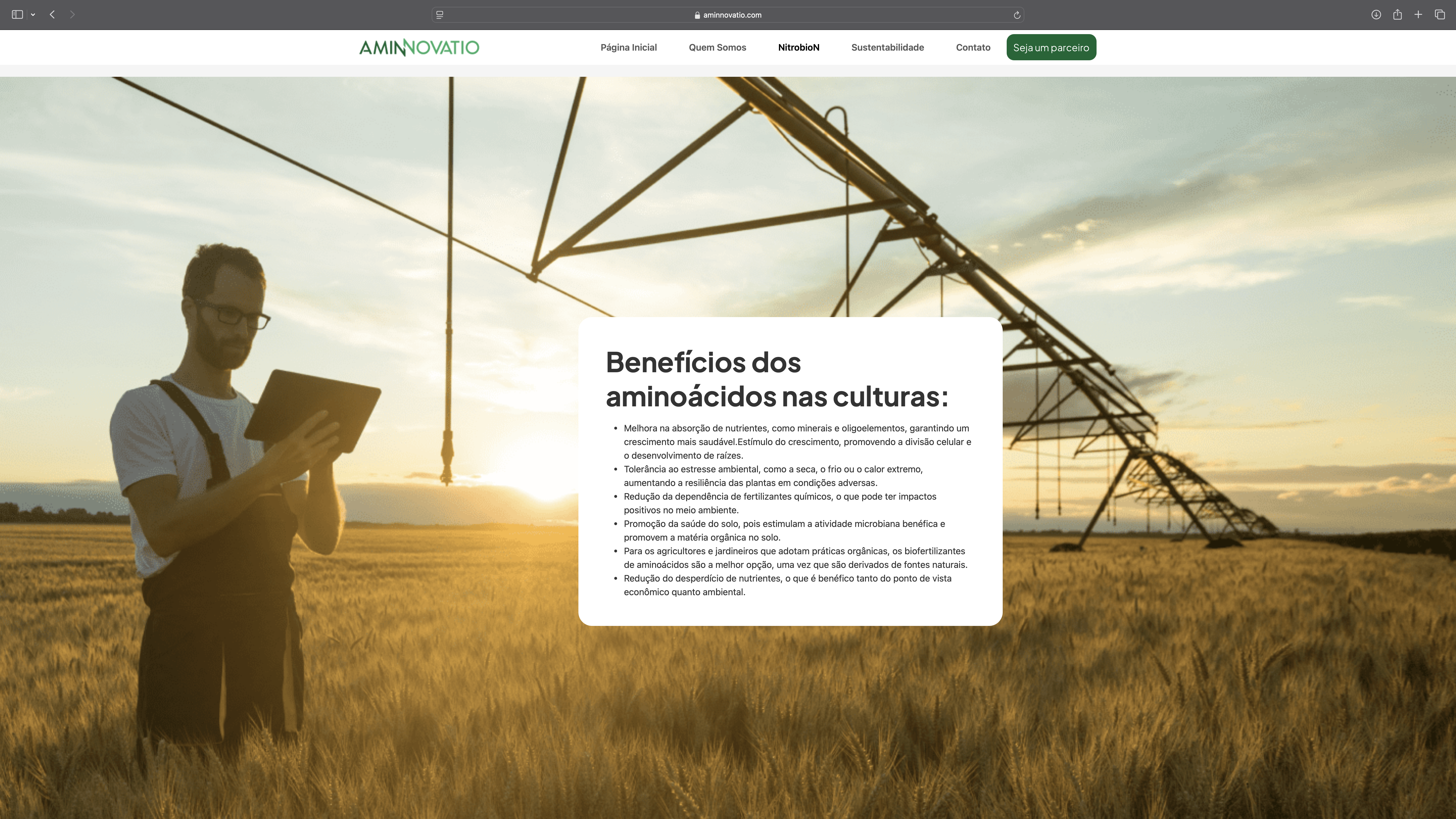 Mapeamos o mercado e a concorrência para entender como posicionar digitalmente a Aminnovatio e destacar sua inovação na produção do Nitrobion, um produto à base de aminoácidos com alto desempenho.